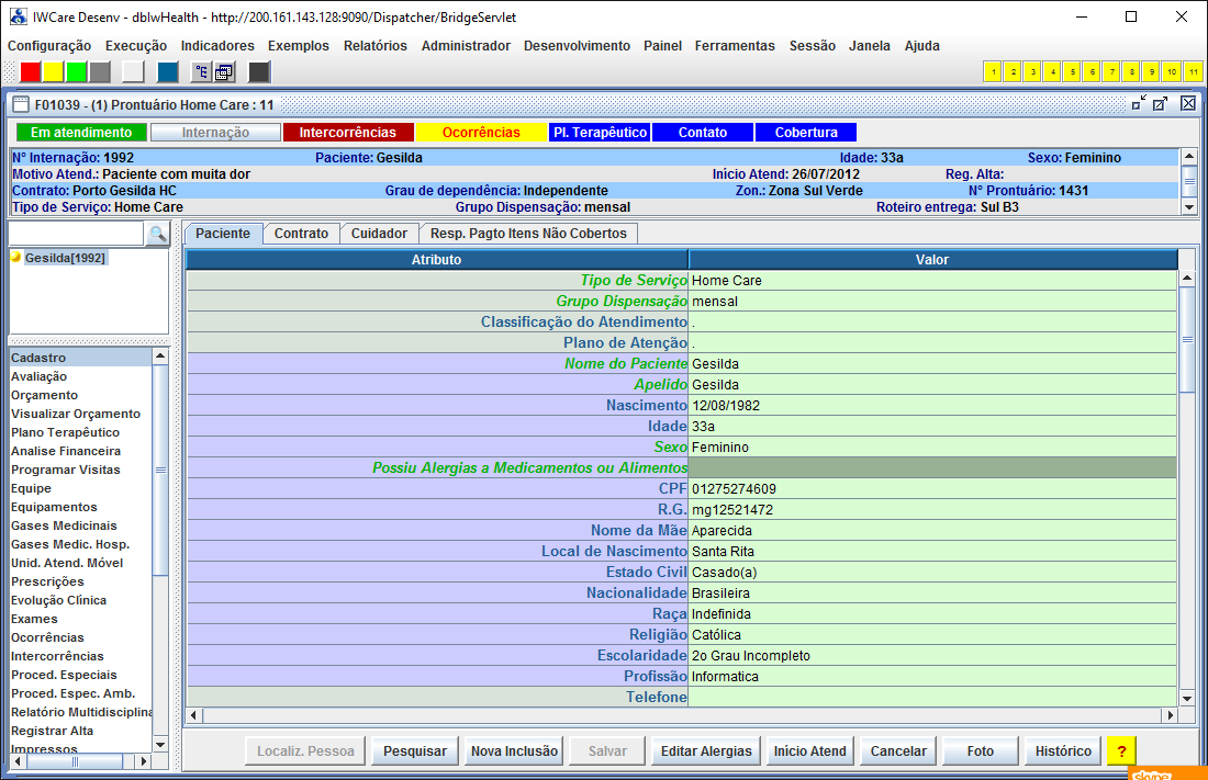 pacientes no prontuário eletrônico do IW: