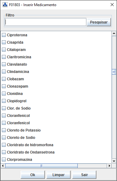 diálogo, o sistema apresentará na lista somente aqueles fármacos cujos nomes
