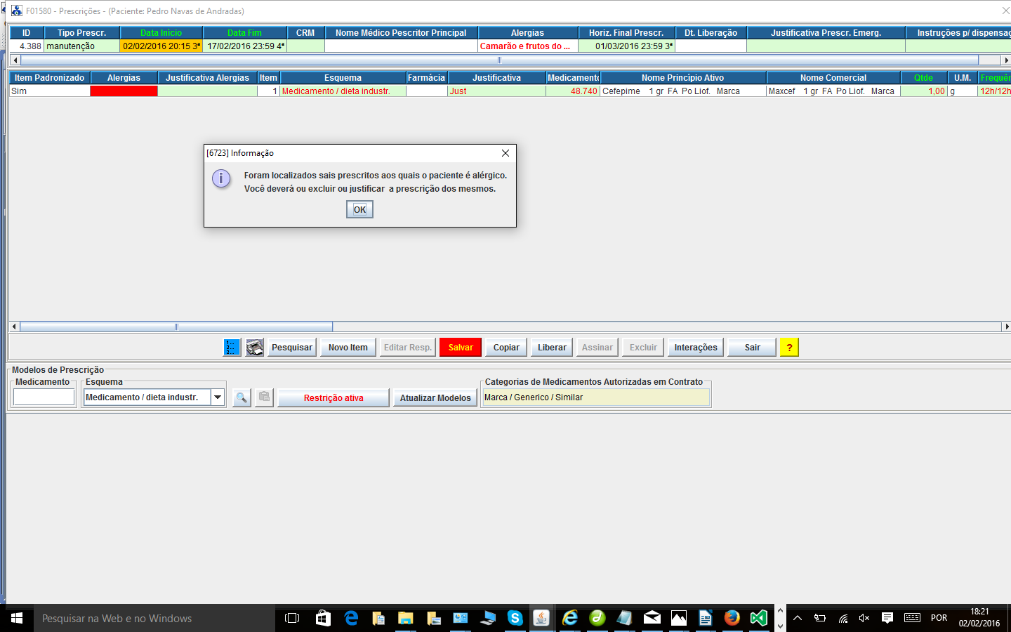 transação “Salvar”. Se forem localizados fármacos prescritos aos