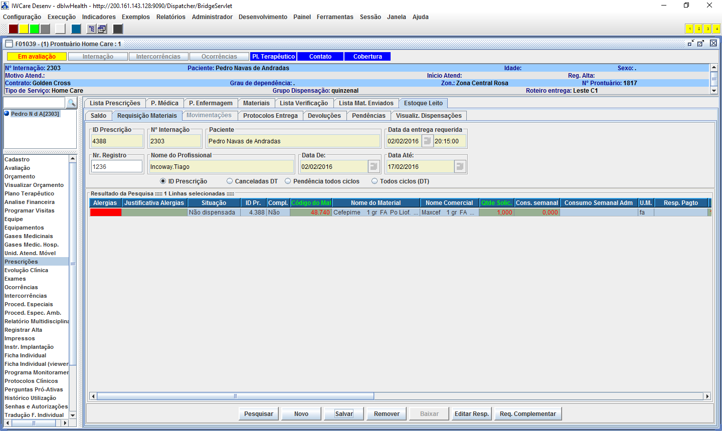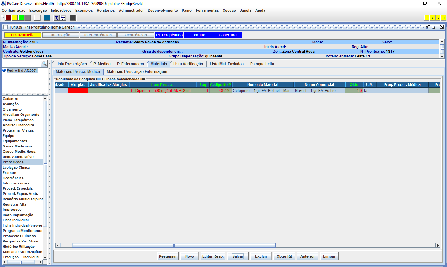 médica o IW detectará automaticamente se houve prescrição de alguma medicação
