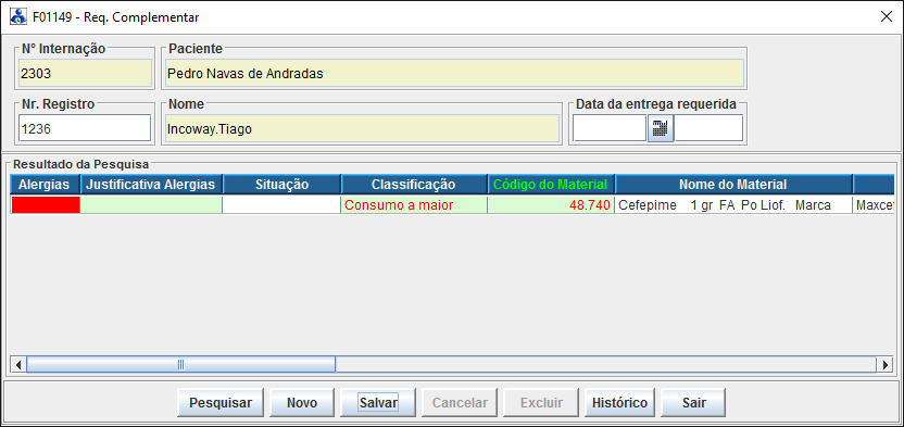 alérgico e clicar no botão “OK”. Para facilitar a localização dos