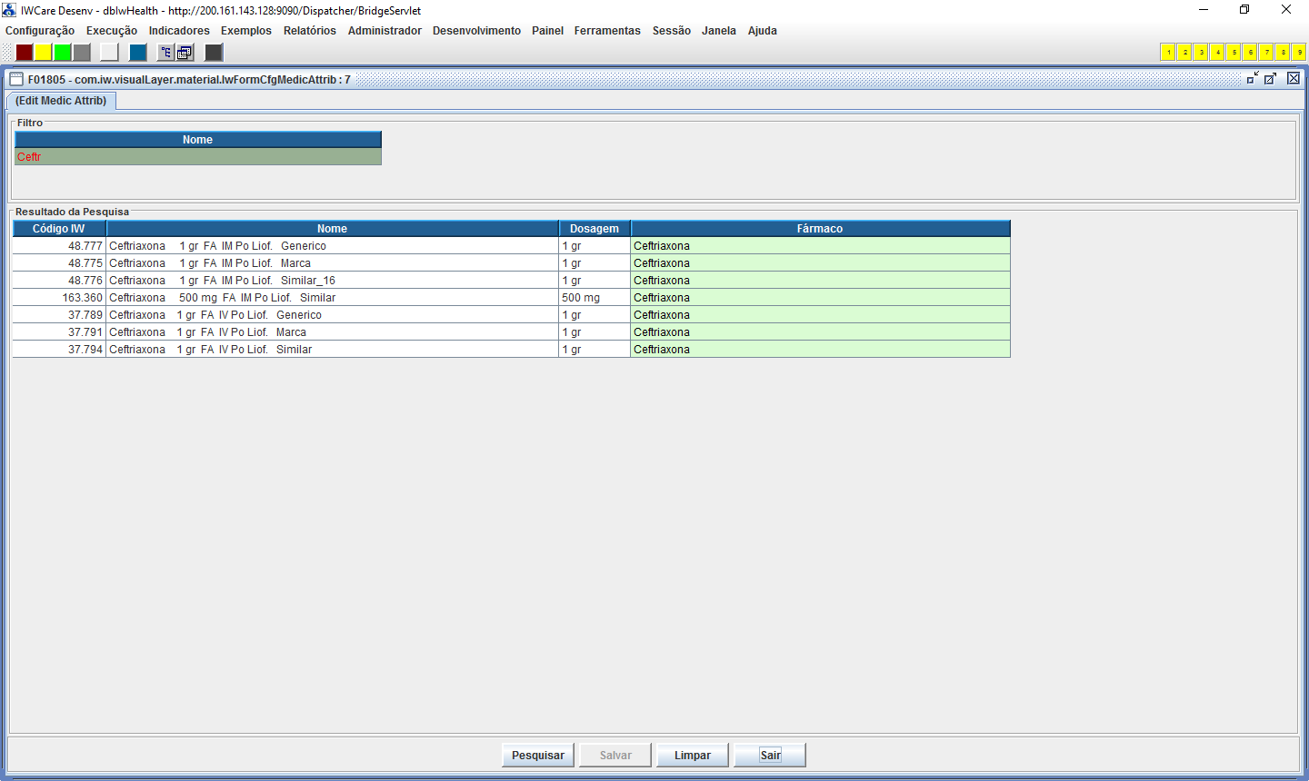 (atributo “Fármaco” no cadastro do SCC do tipo “Medicamentos”. Nota
