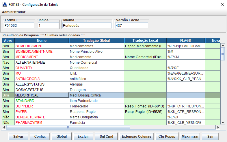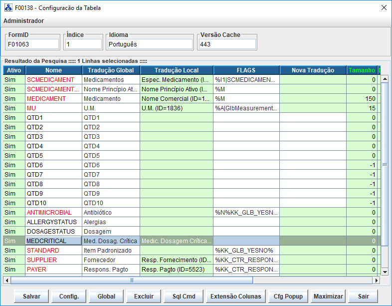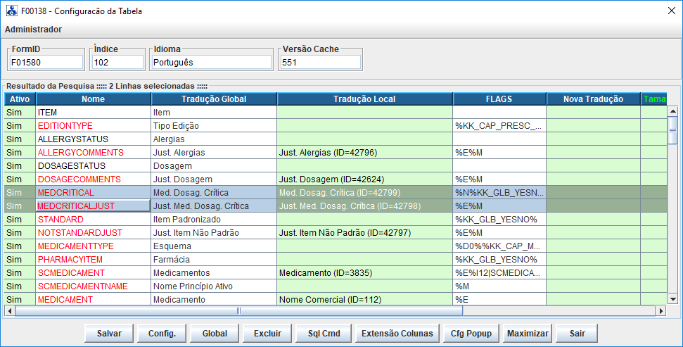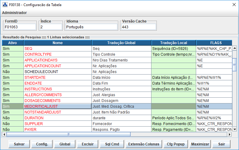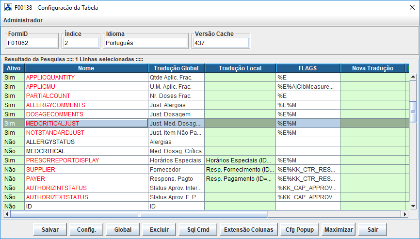 ser previamente alteradas de modo a deixar a coluna “Justificativa Medic. Dosagem Crítica” (MEDCRITICALJUST) visível e editável