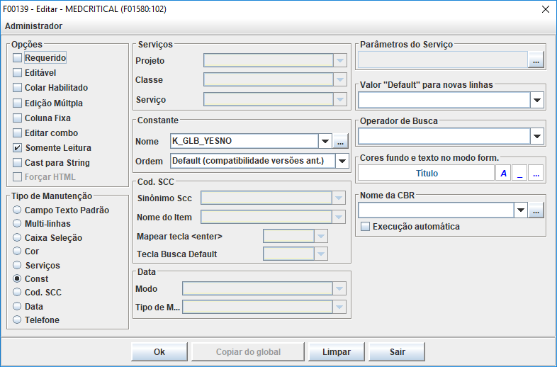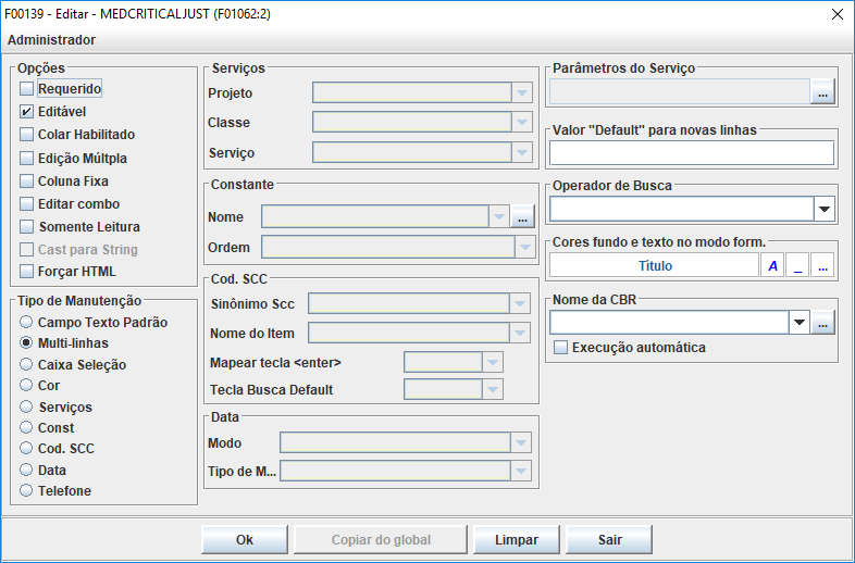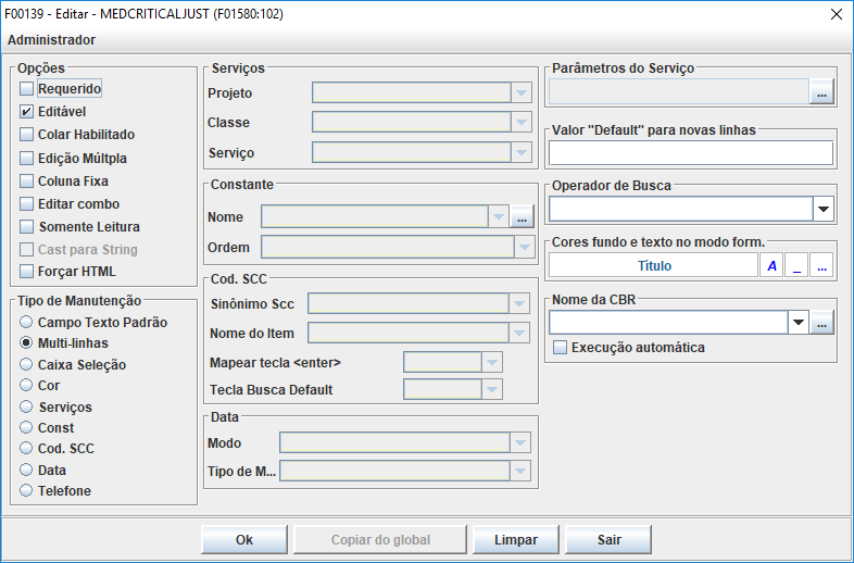 Configuração do gride de cima: Notem a coluna MEDCRITICALJUST visível. A justificativa deverá ser registrada