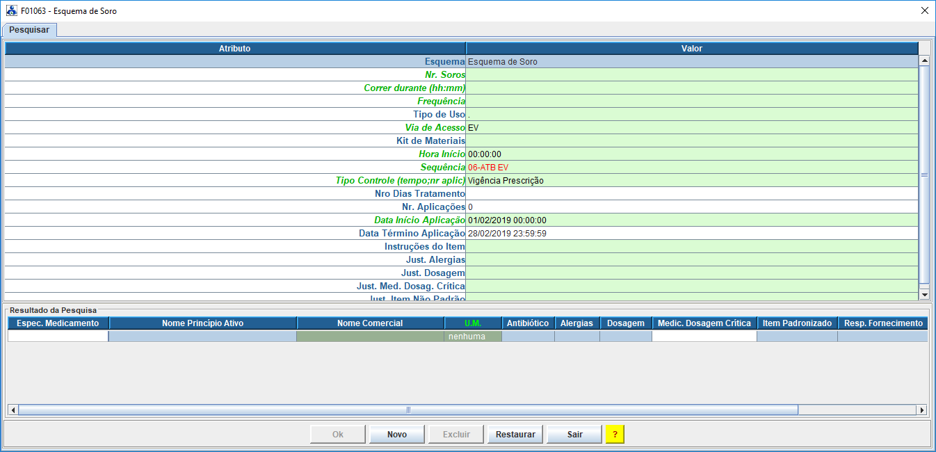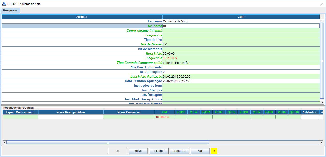 Abaixo ilustramos a caixa de diálogo F01580: Notem as colunas “Med. Dosag.